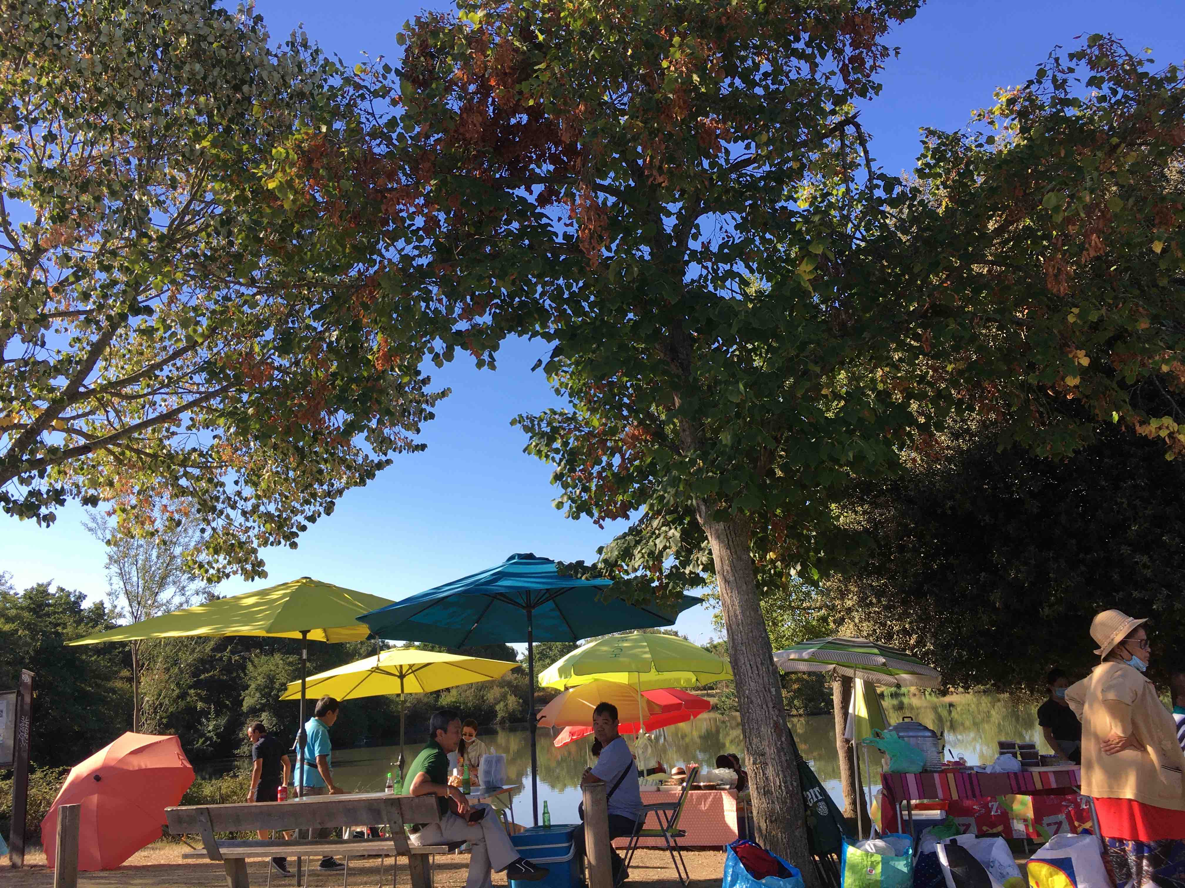 こんな寛いだ雰囲気で、遠目だとピクニックのようだけど、