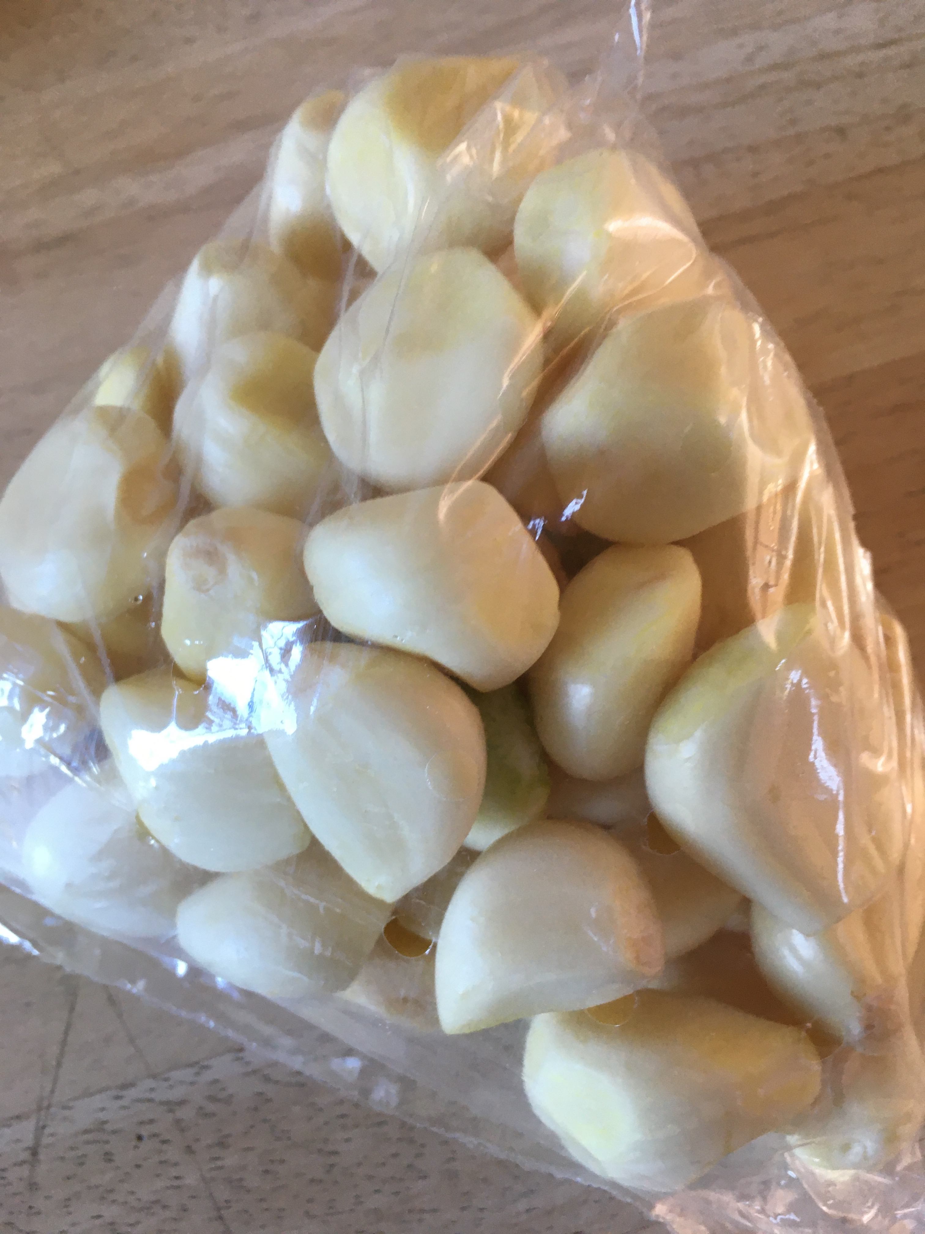 ニンニクは皮を剝いたのが売ってたので、3分の2は醤油につけて