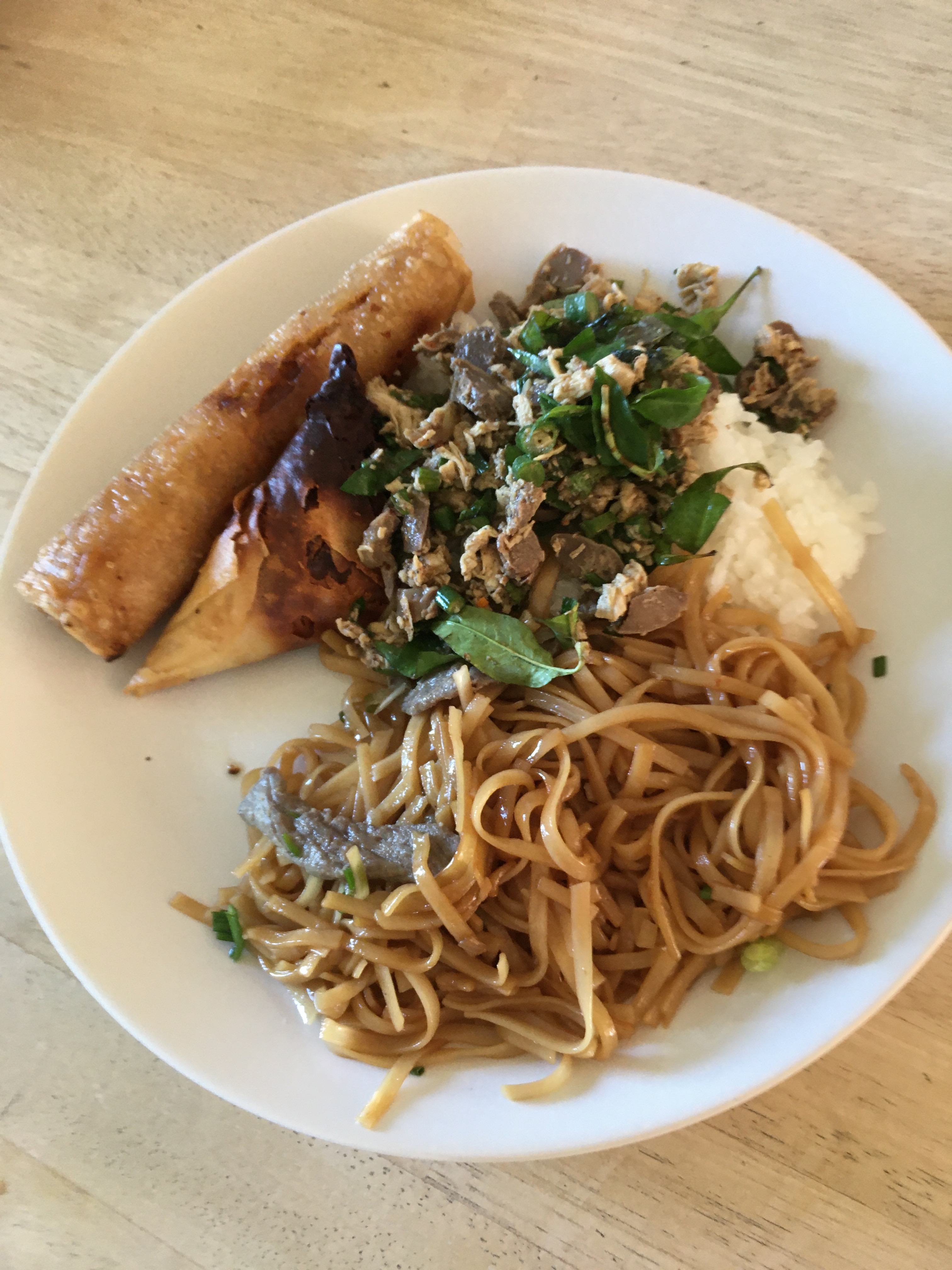 お決まりのお気に入りのお店でネム、サムサ、ベトナム風焼きそば、